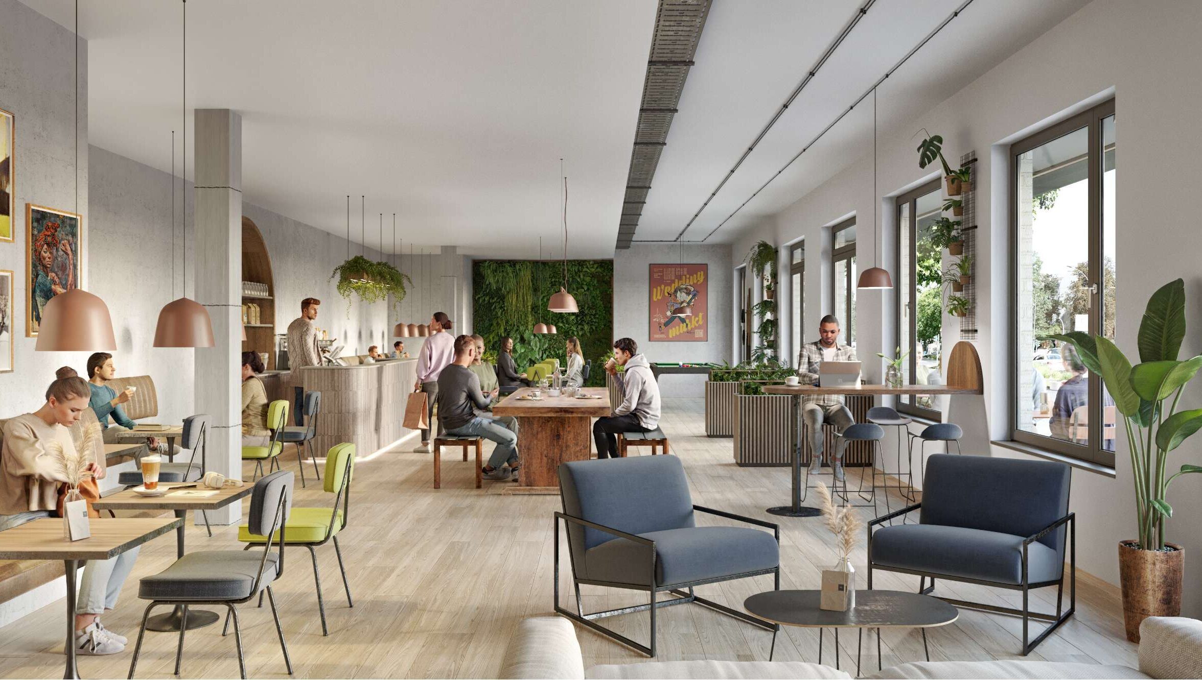 Welches Gewerbe wird im Erdgeschoss von rezy einziehen? Eine Coffee-Bar, ein Buchladen, ein Yogastudio? Das steht aktuell noch nicht fest. Bevorzugt wird jedoch eine Vermietung, die der Hausgemeinschaft einen Mehrwert bietet – als das nächstgelegene Highlight von zuhause aus.
